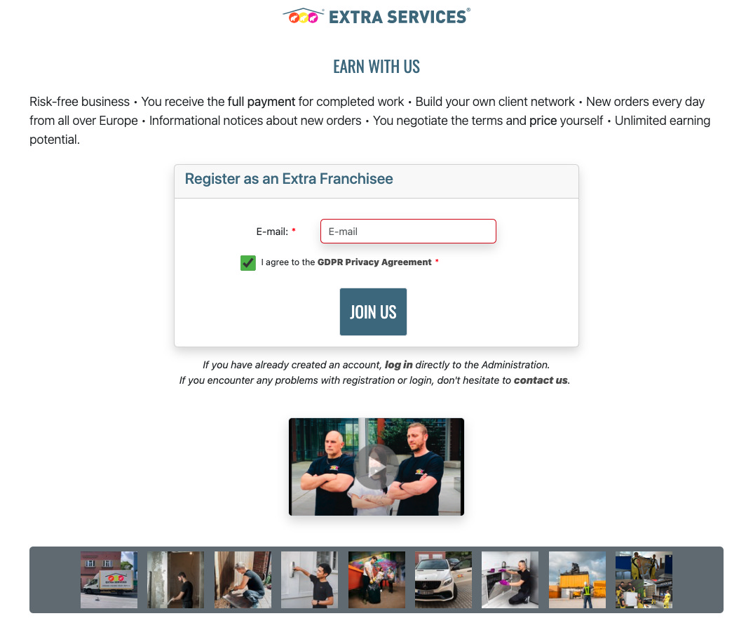 Every partner who starts with us uses registration in the system and first tries how things work with us. Then they say to themselves: “Well, I could have more orders, I want more.” But they can’t. Our trained franchisees are always first in line. Partners only get orders that our franchisees cannot handle or do not want. Therefore, partners have somewhat limited membership in the EXTRA SERVICES network. Becoming a franchisee is no longer a cheap matter. This commitment really costs something. But if you calculate and analyze this cost economically, the figure looks very different. The contract is concluded for 60 months. Calculate the cost over 60 months. And you will get an amount that absolutely everyone who wants to be at least somewhat visible and do business spends without blinking just on internet advertising during one or two weeks. But with us, that is the amount for one month. That means for anyone who can calculate economically, it is at least a 50% cost saving on their monthly business expenses. And that definitely pays off. That is the real value of the EXTRA SERVICES network. Not maximum earnings. We cannot influence those. Communication, empathy, entrepreneurial spirit, skillfulness, improvisation, luck – it’s all on YOU. We can perfectly minimize your costs. That is the greatest magic and strength of the entire EXTRA SERVICES system.